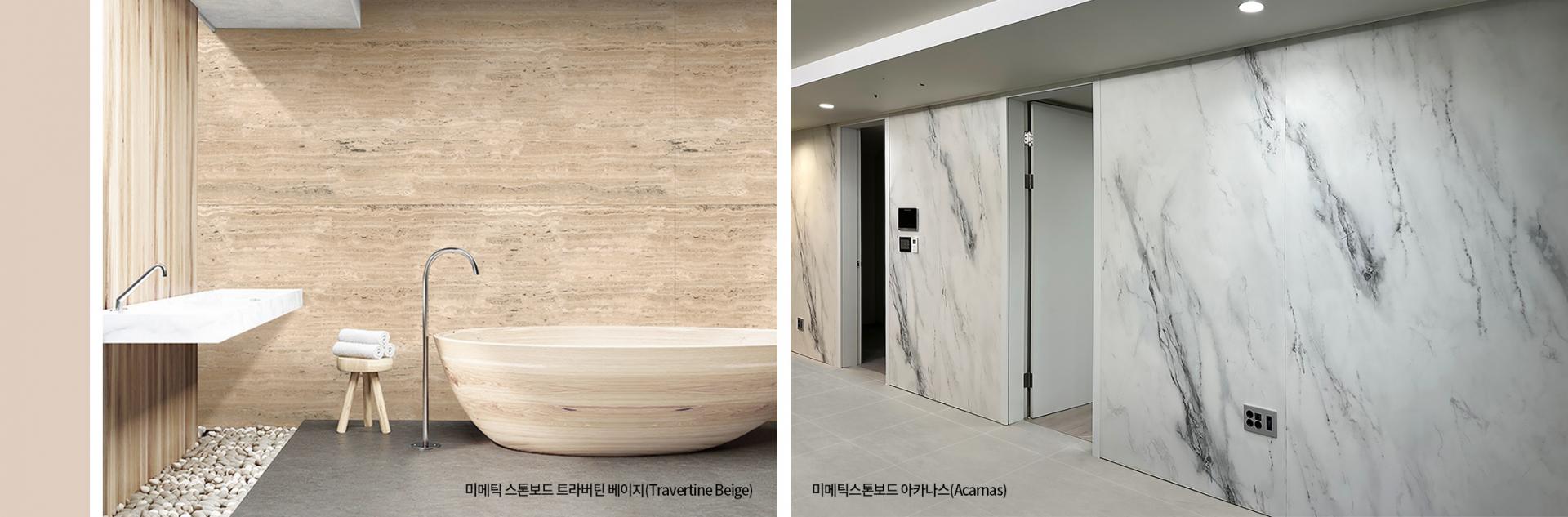 미메틱 스톤보드는 스톤보드 위에 미메틱 LPL을 융접착 했지만, 불연성이 탁월해 2급 불연자재 성능을 지니며 내구성도 반영구적이다. 또한 미메틱 스톤보드는 장시간 물이나 수분에 노출되어도 부풂 현상이나 뒤틀림이 없고 곰팡이나 균류에 의한 부후(腐朽)가 발생하지 않는다. 라돈이나 휘발성 유해 물질도 거의 발생하지 않는 친환경 자재이고 화재 시에도 플라스틱과 달리 유독가스를 방출하지 않는다. 따라서 아파트, 단독주택, 주거형 오피스텔 등 주거시설의 욕실 자재, 벽면 자재와 다중이용시설, 교육시설, 공공기관용 자재로도 안심하고 사용할 수 있다.