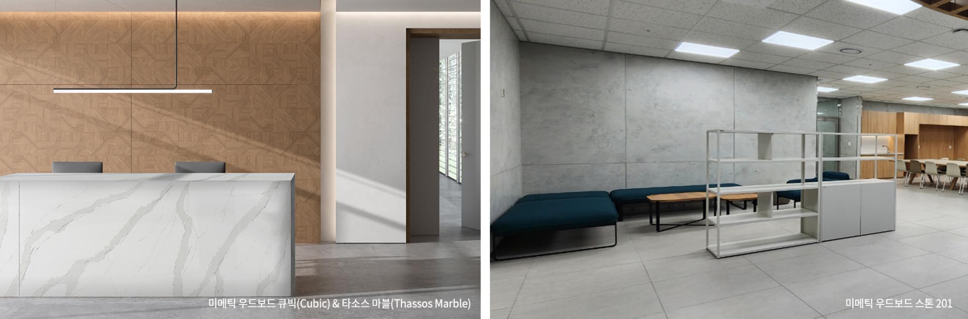 주거 및 상업 공간의 내외장용으로 다양하게 출시된 미메틱 제품은 모두 기초 표면 소재가 미메틱 디지털 프린팅 페이퍼다. 특히 미메틱은 최근 내외장 제품 규격이 점차 대형화하고 있는 트렌드에 맞게 1.2×2.4~3.6m 빅슬랩(Big Slab) 규격으로 공급하면서도 인쇄된 문양이 반복되지 않고 실사감, 입체감, 표현 색상이 여타 제품에 비해 월등하며 가성비까지 갖추었다. 이러한 장점을 기반으로 미메틱 우드보드는 가구, 부엌가구, 벽장재, 인테리어용으로 사용하는 MFC, MFB 시장을 타깃으로 하며, 미메틱 스톤보드는 욕실 및 인테리어 벽면재로 사용되고 있는 포셀린타일, 타일, 석재, 대리석 대체 시장을 적극 공략하고 있다. 미메틱 외장재는 주거, 상업, 공공건물의 외벽용 석재 등 외장마감재 시장을 타깃으로 하고 있다.
