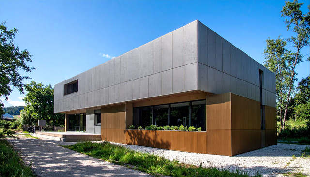 무기질 소재, 유리섬유, 열경화성수지로 제작된 특수고밀도적층판재에 디지털프린팅 표면재를 융합시킨 제품. 외부 충격에 강하며 자기소화성능을 갖춘 준불연 방수 외장재.